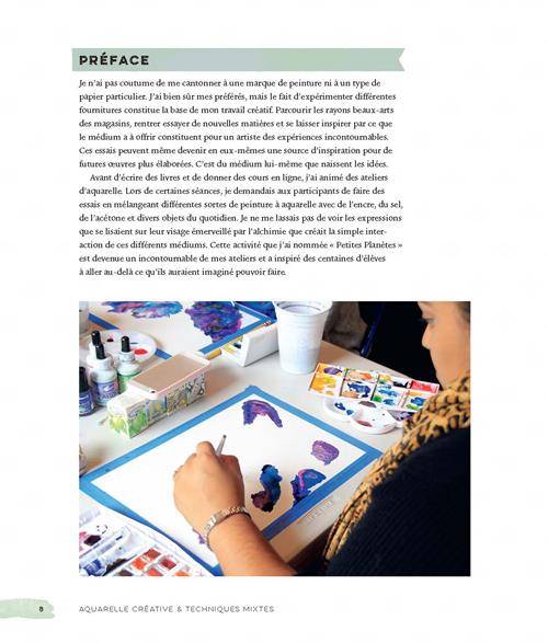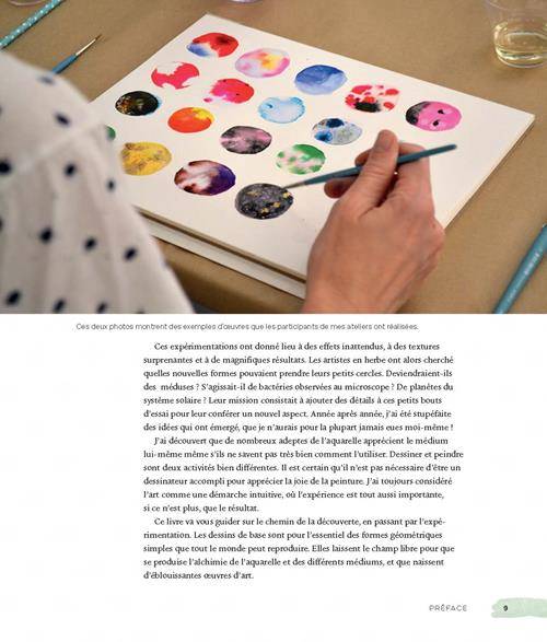 • Reprenez progressivement les techniques de base de l’aquarelle, puis lancez-vous dans des expérimentations avec du sel, de l’eau de Javel, de la gomme de masquage ou encore de l’alcool pour créer des effets éblouissants.