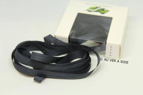 Un ruban tissé à partir de trame pure soie et teint en écheveaux pour garantir une couleur unie.