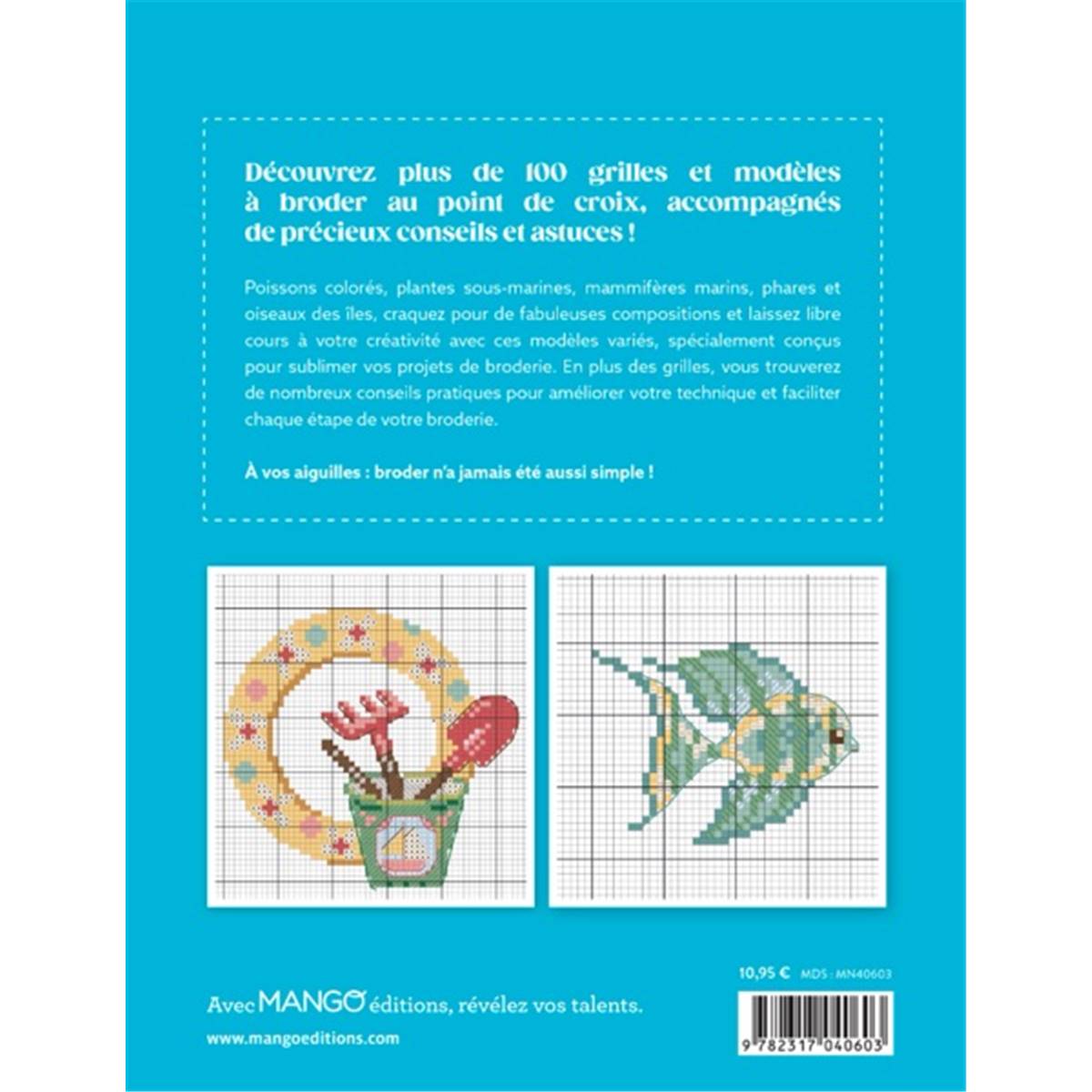 Poissons colorés, plantes sous-marines, mammifères marins, phares et oiseaux des îles, craquez pour de fabuleuses compositions et laissez libre cours à votre créativité avec ces modèles variés, spécialement conçus pour sublimer vos projets de broderie. En plus des grilles, vous trouverez de nombreux conseils pratiques pour améliorer votre technique et faciliter chaque étape de votre broderie.