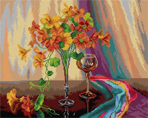 CANEVAS BLANC - FLEUR ET VERRE DE VIN D'APRES RUBRITIUS