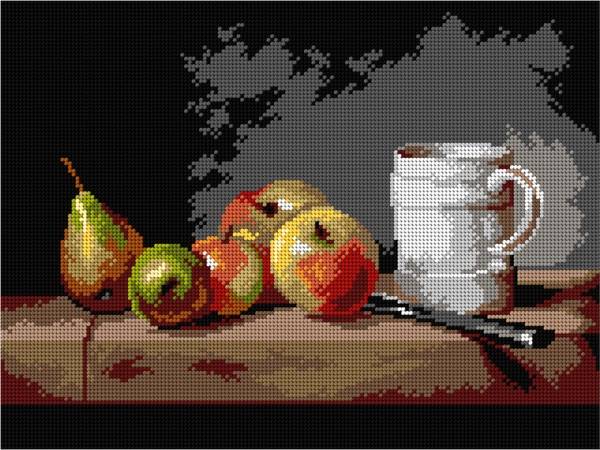 CANEVAS BLANC - NATURE MORTE AVEC COUPE POMMES ET POIRES - 30 X 40 CM