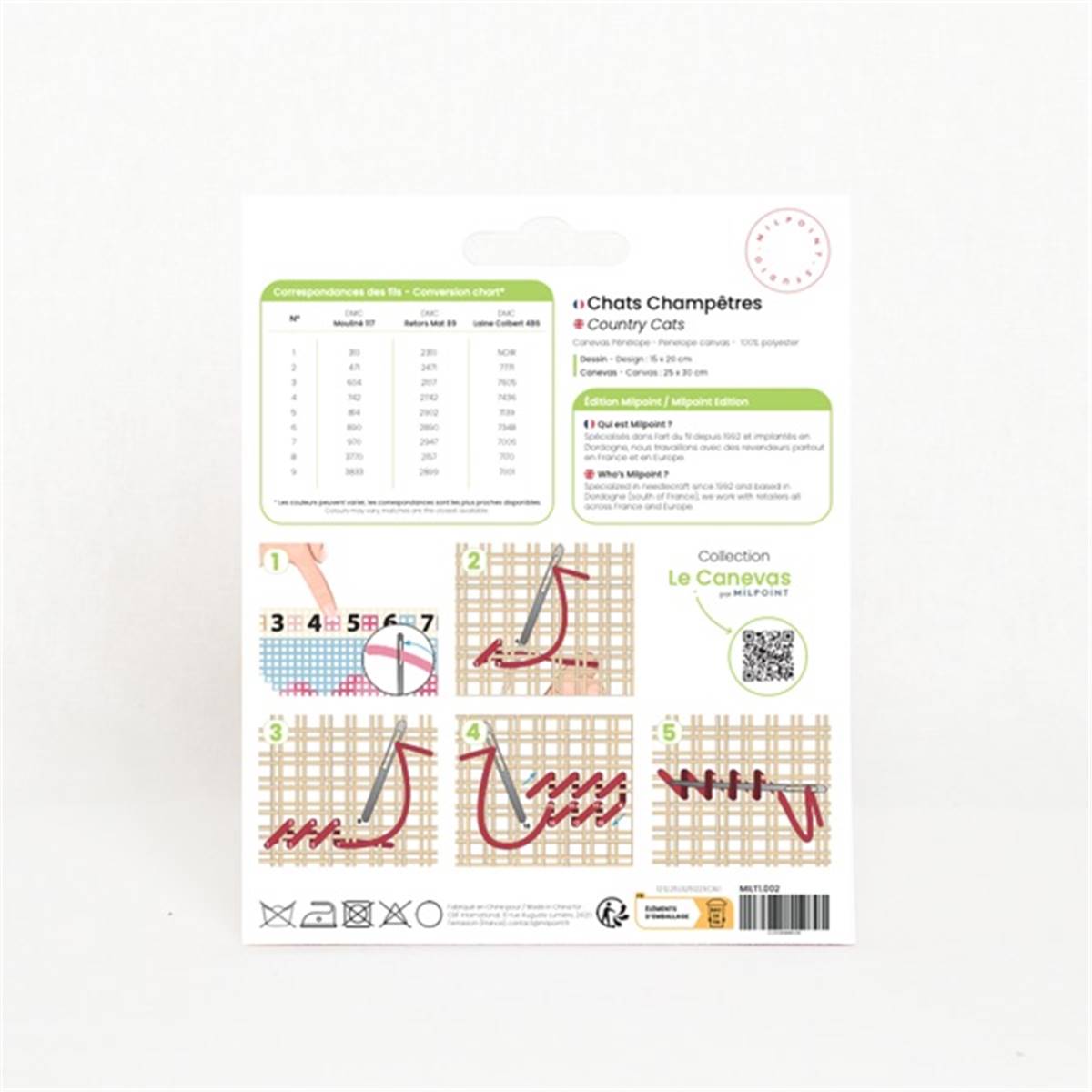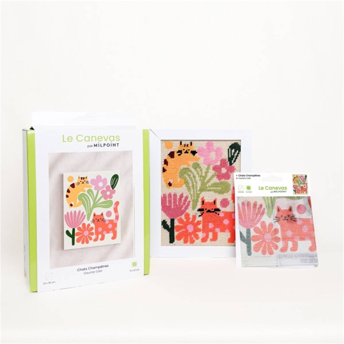 CANEVAS IMPRIME BLANC - DESSIN 15 X 20 CM - CHATS CHAMPETRES