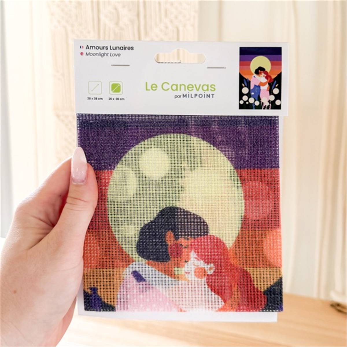 CANEVAS IMPRIME BLANC - DESSIN 20 X 30 CM - AMOURS LUNAIRES