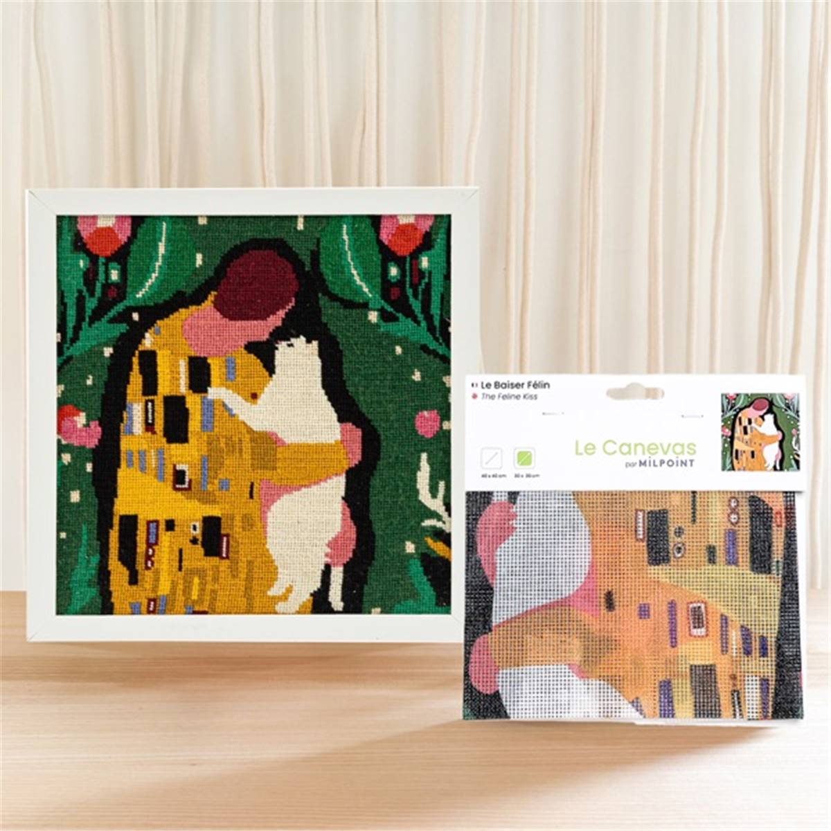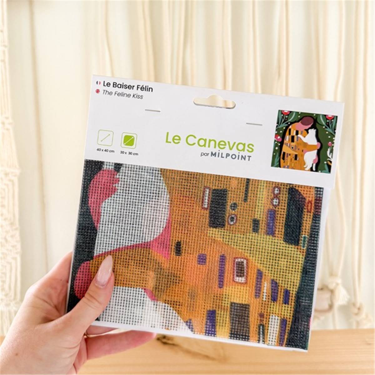 CANEVAS IMPRIME BLANC - DESSIN 30 X 30 CM - LE BAISER FELIN