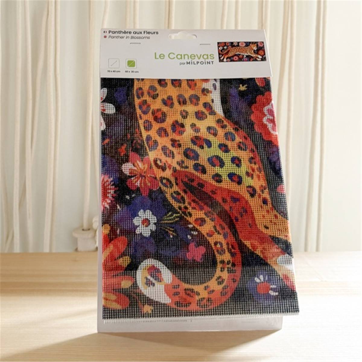 CANEVAS IMPRIME BLANC - DESSIN 30 X 60 CM - PANTHERE AUX FLEURS