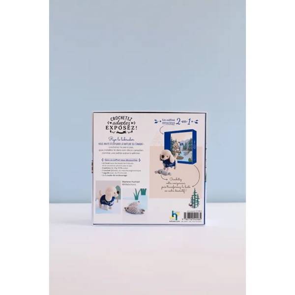 Contenu de ce coffret astucieux pour créer un chien au crochet à installer dans un décor