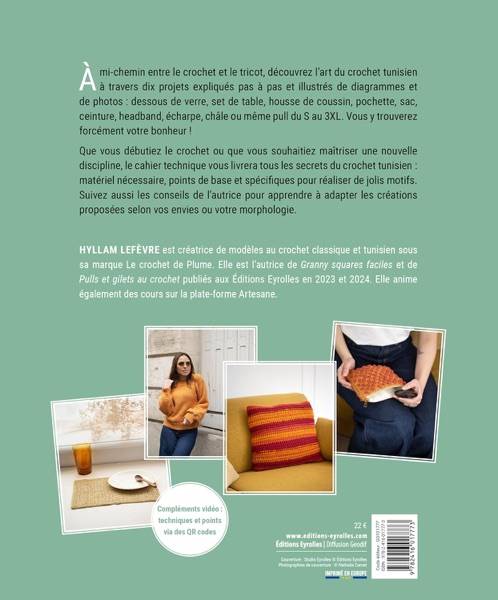 L'autrice y donne aussi toutes les clés pour des finitions impeccables qui sont indispensables pour le crochet tunisien, notamment au niveau des lisières. La deuxième partie propose dix modèles (sac, pochette, écharpe, châle, headband, ceinture, pull, coussin, set de table, dessous de verre) accompagnés de diagrammes. Vous pourrez mixer les points à l'envi pour faire de ces réalisations des créations uniques.