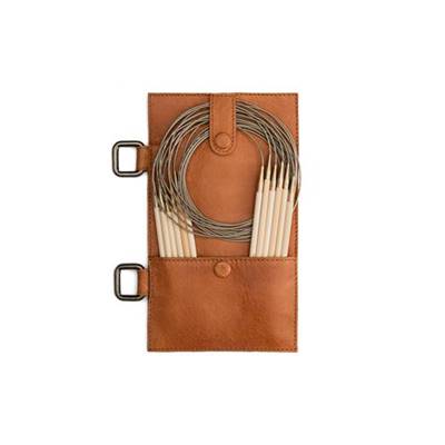 Ce magnifique étui en cuir allie style et praticité. Le Carita A possède des poches non seulement pour les aiguilles circulaires, mais aussi pour les petits accessoires de tricot comme les marqueurs de mailles. L'étui se range à l'aide de deux anneaux métalliques qui peuvent être fixés à l'étui Carita.