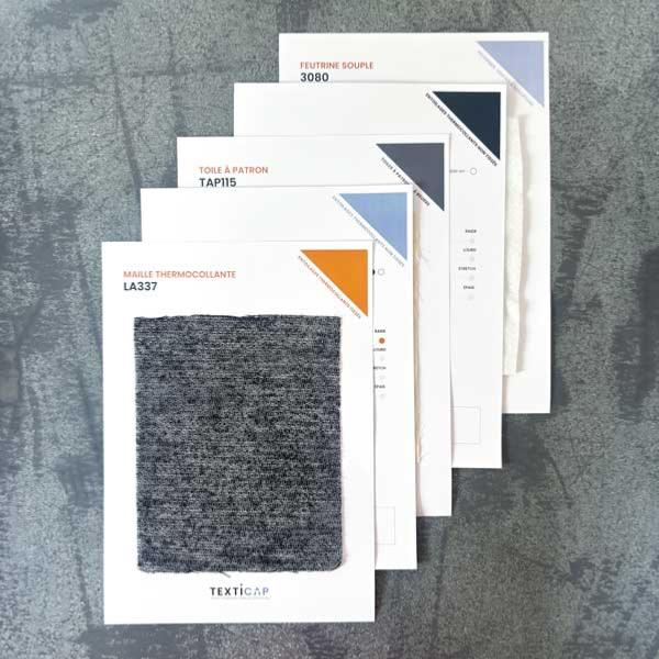 Découvrez la qualité de nos entoilages Texticap grâce à cette fiche échantillon. Chaque fiche comprend :