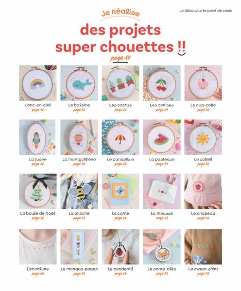Le point de croix ne laisse aucune limite à son imagination ! Il pourra créer facilement dejolis motifs sur tous les supports textiles souhaités !
