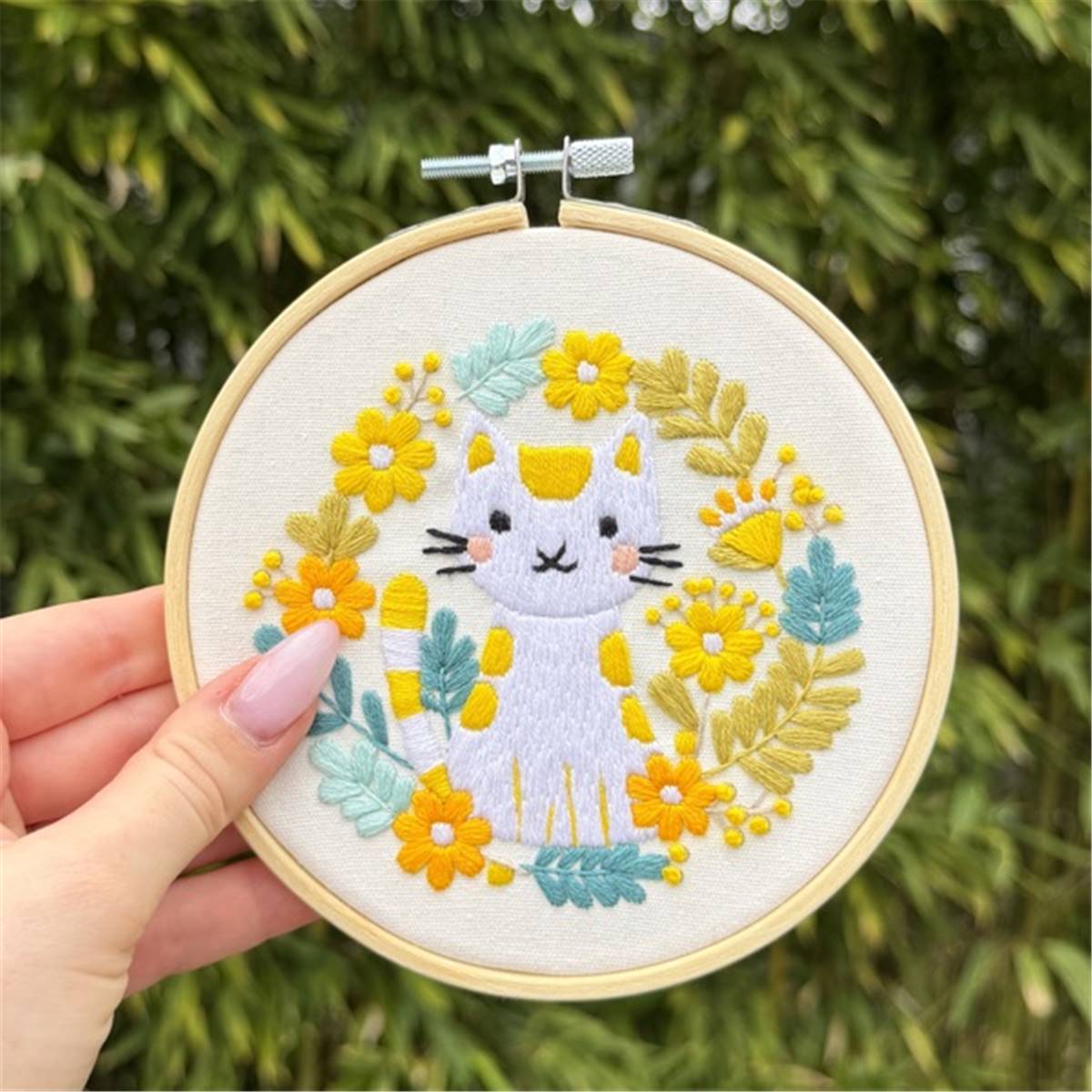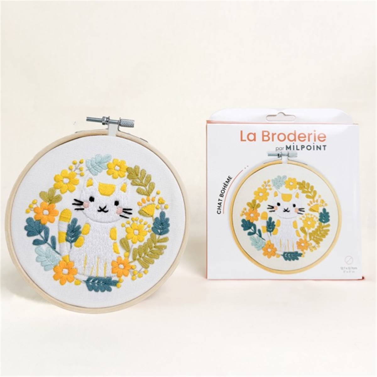 KIT BRODERIE AVEC TAMBOUR 15 CM - CHAT BOHEME
