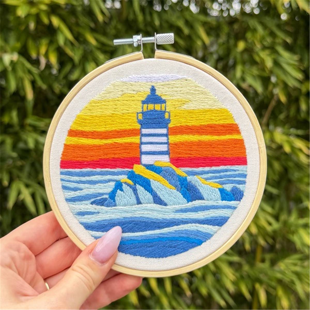 KIT BRODERIE AVEC TAMBOUR 15 CM - PHARE AU CREPUSCULE