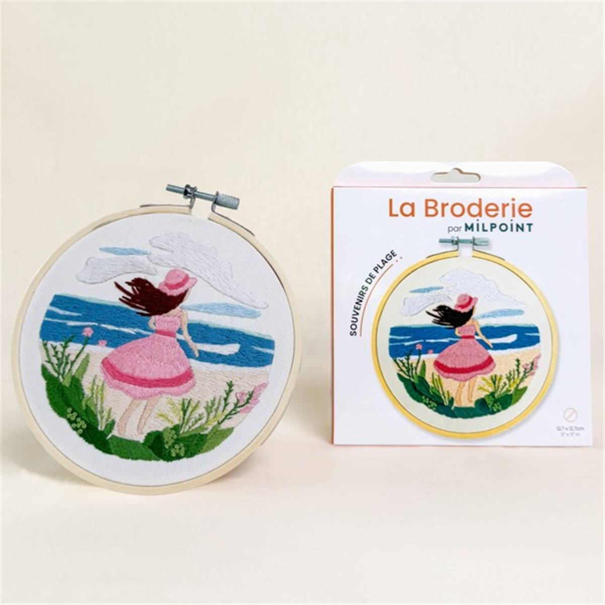 KIT BRODERIE AVEC TAMBOUR 15 CM - SOUVENIRS DE PLAGE