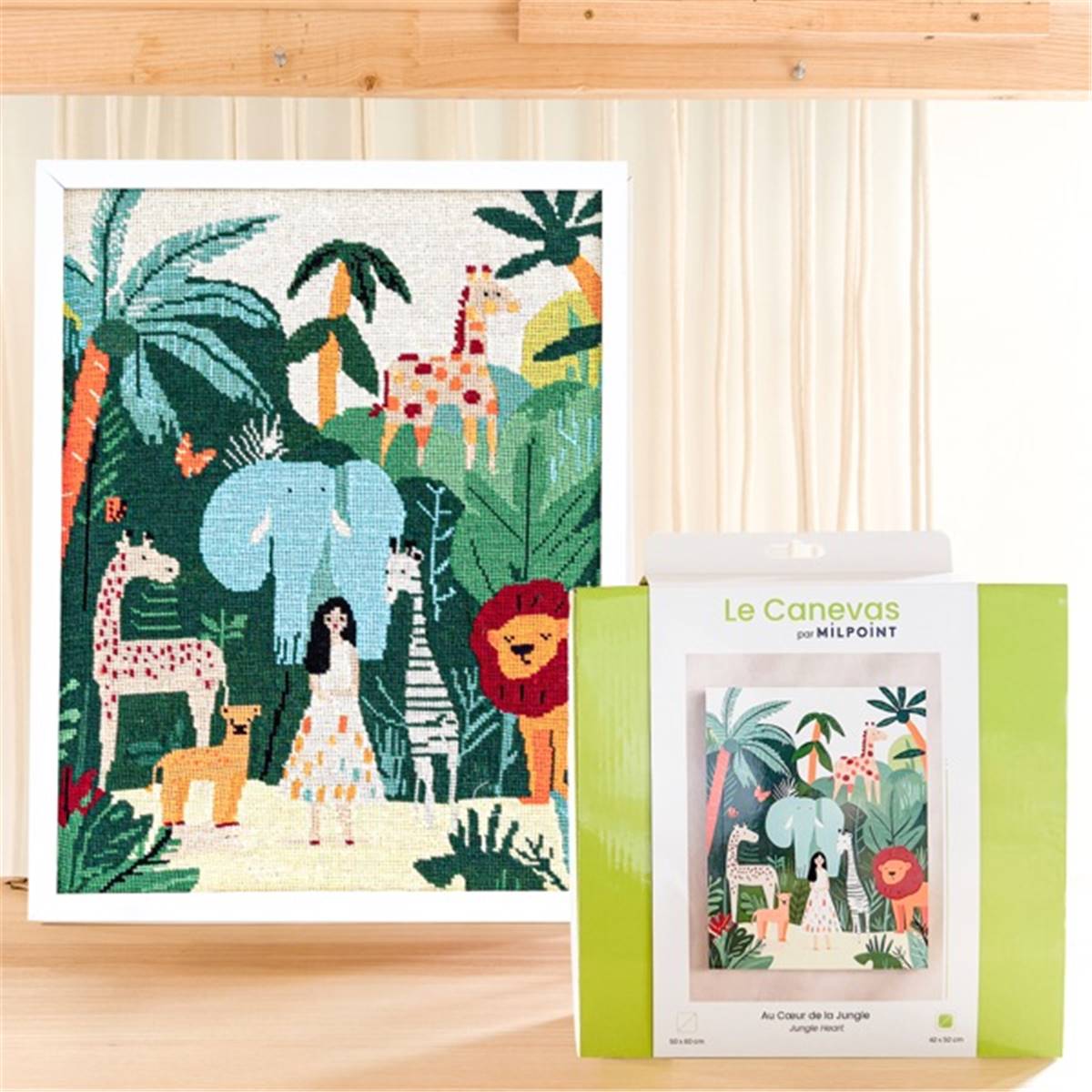 KIT CANEVAS COMPLET - DESSIN 40 X 50 CM - AU COEUR DE LA JUNGLE