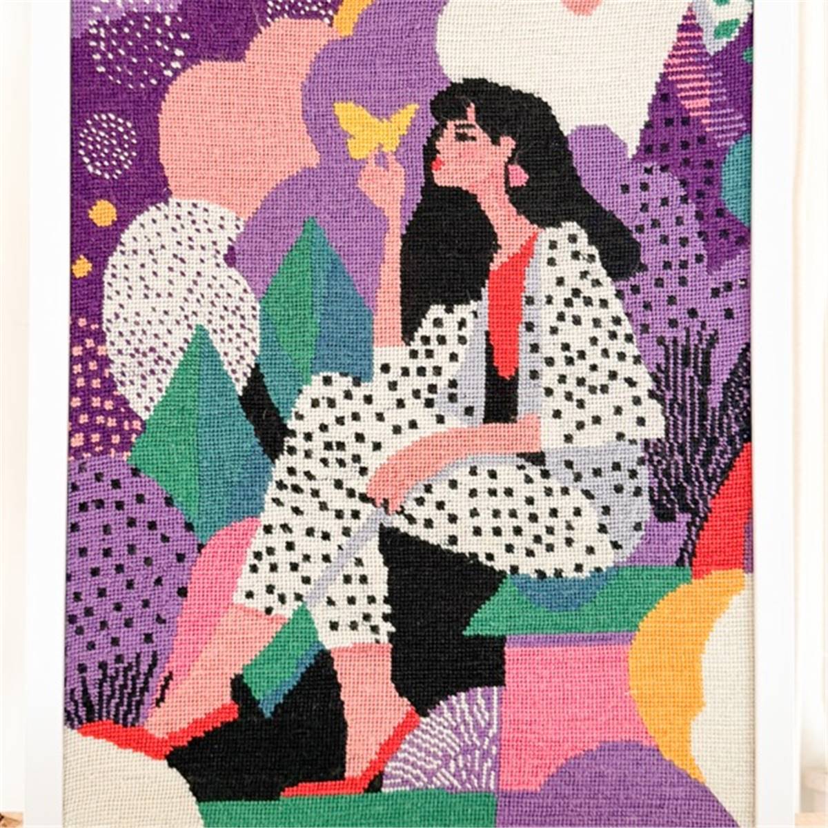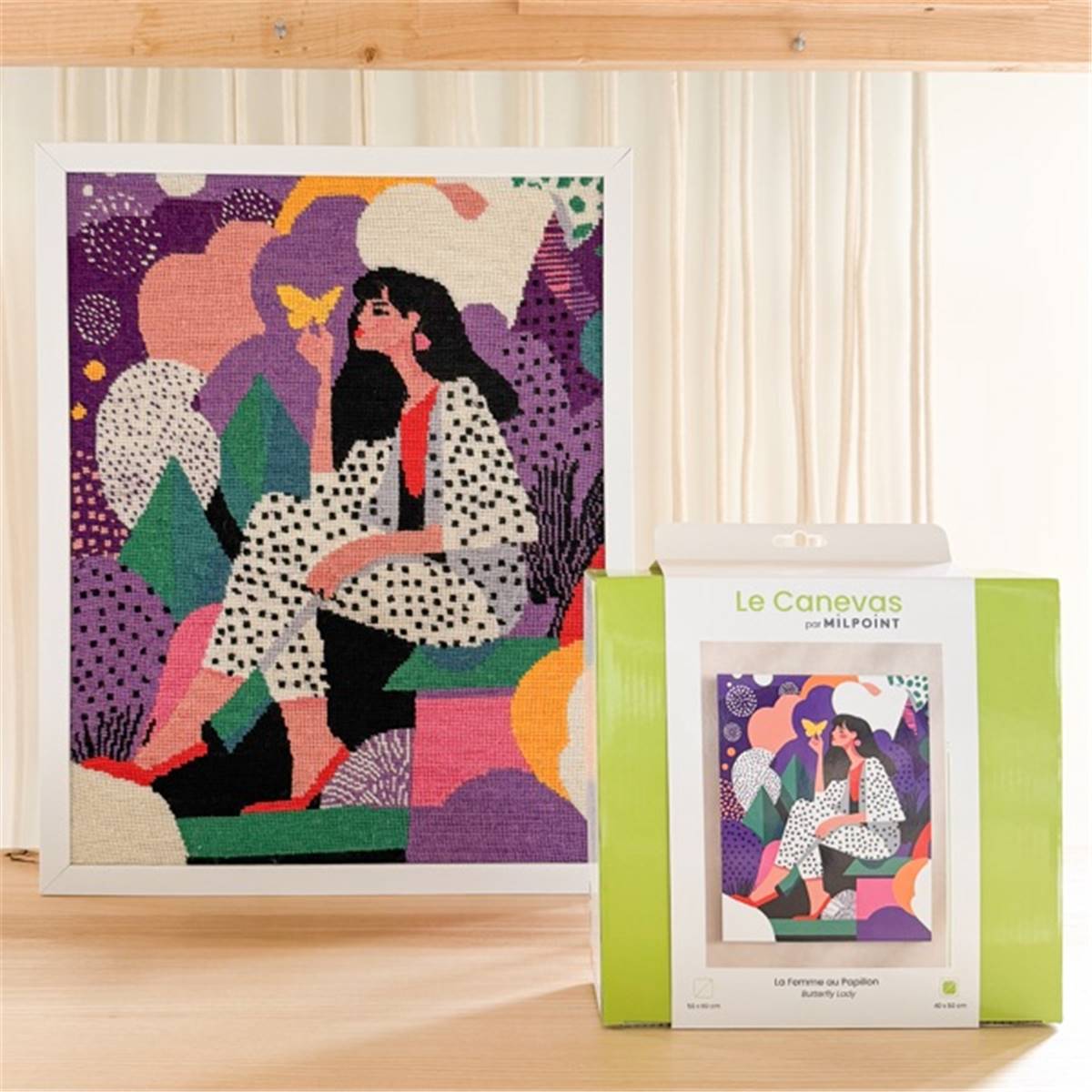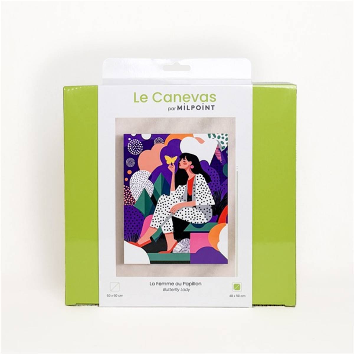 KIT CANEVAS COMPLET - DESSIN 40 X 50 CM - LA FEMME AU PAPILLON
