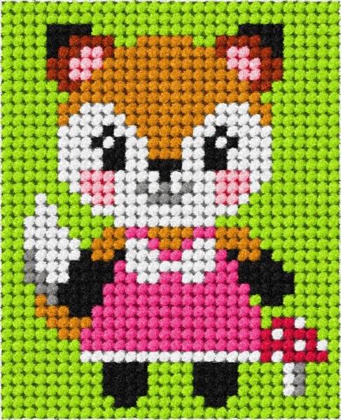 KIT DEMI POINT ENFANT 17 X 20,5 CM - PETITE RENARDE AU CHAMPIGNON