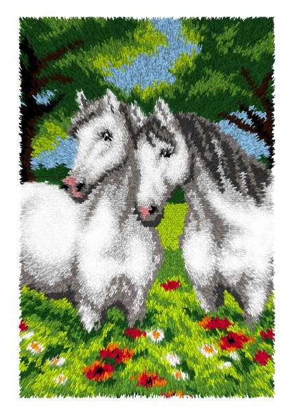 KIT TAPIS POINT NOUE 50 X 75 CM - DUO DE CHEVAUX BLANCS