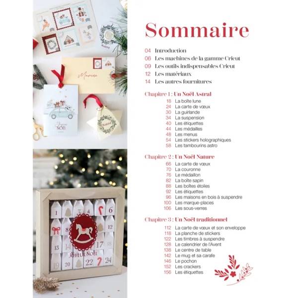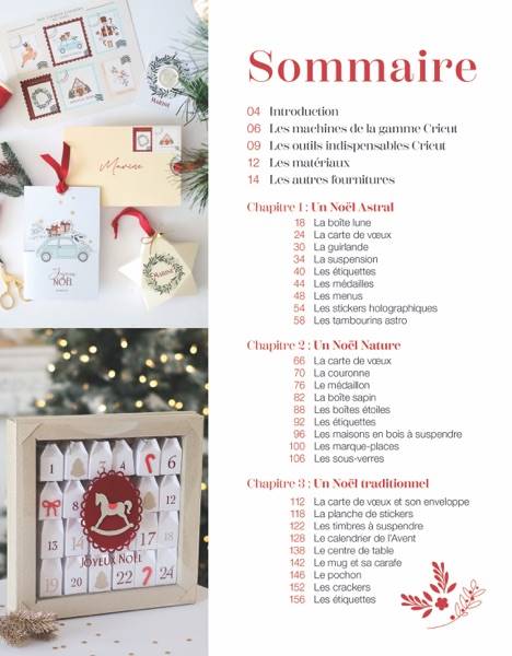 En effet, il vous invite à découvrir toutes les possibilités créatives de la machine de découpe Cricut Maker, sa vaste gamme d’outils et son logiciel intuitif. Vous apprenez comment découper plus de 300 matériaux, mais aussi graver, écrire et décorer une grande diversité de supports. Une initiation très simple pour réaliser facilement 27 projets Cricut Noël autour de 3 univers inspirants (nature, astral, traditionnel) en suivant les tutos photos proposés. Laissez-vous guider afin de personnaliser votre déco pour un Noël 100 % magique et créatif !
