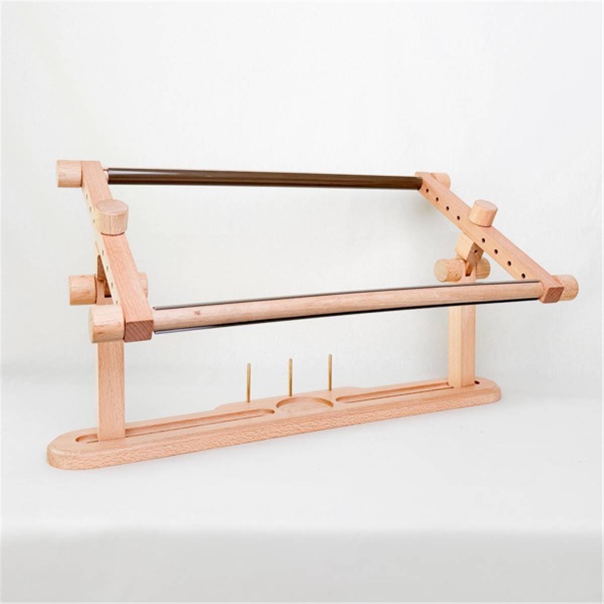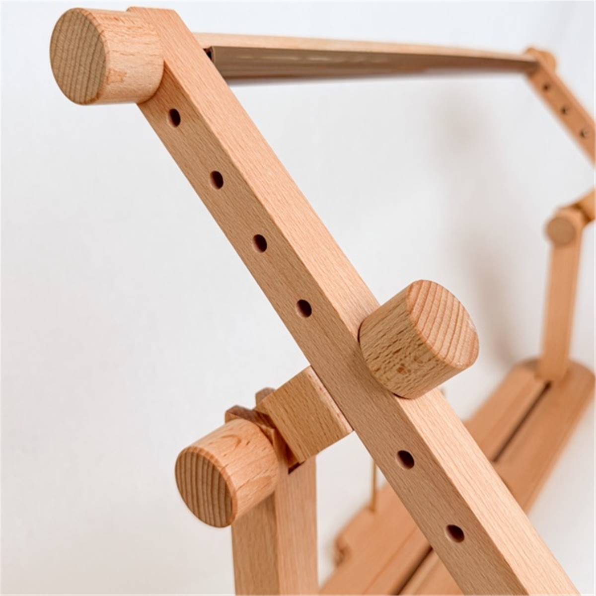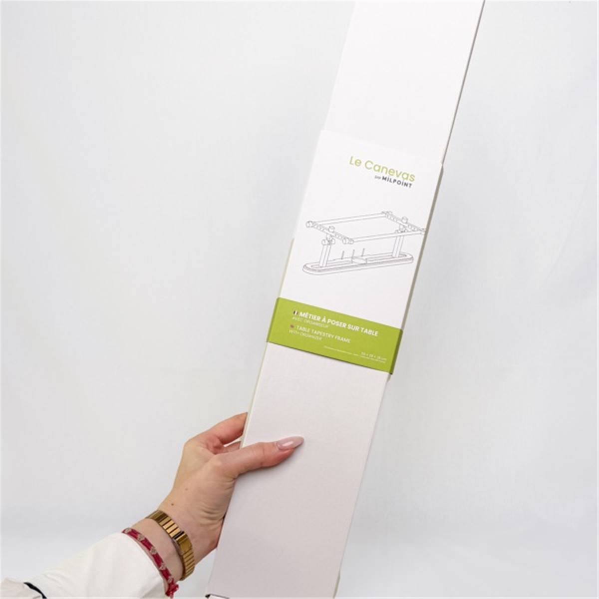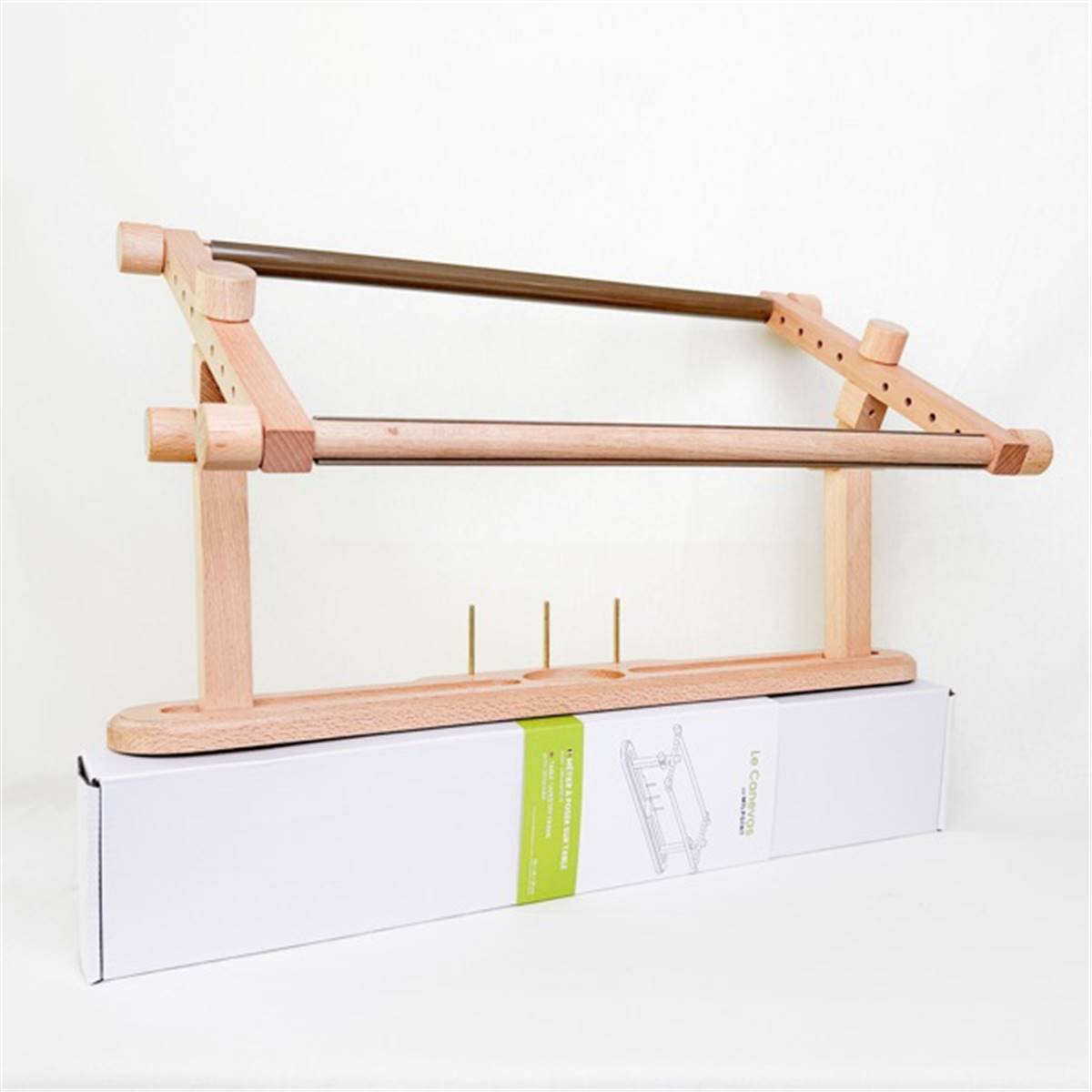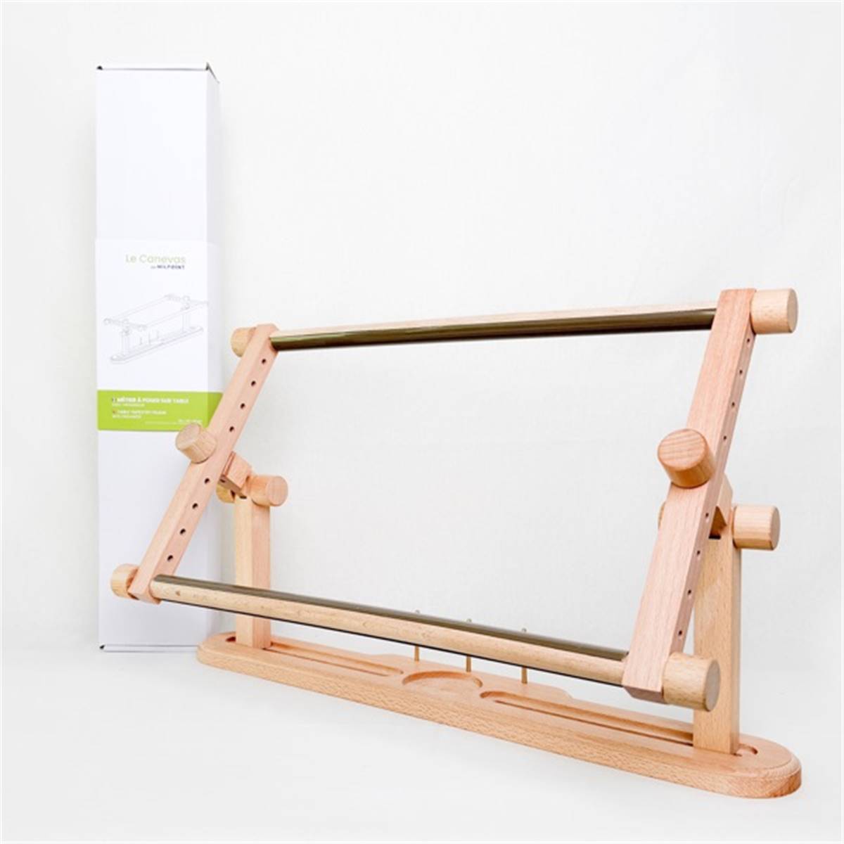 Idéal pour le canevas et les grandes broderies, ce métier offre une surface de travail stable ainsi qu’un support à bobines intégré, permettant de ranger facilement fils et accessoires.