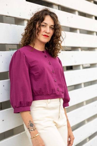 Je suis Pearl, un chemisier que vous pouvez créer en 36 versions différentes. J’ai été conçu pour offrir plusieurs options de style, tout en restant facile à adapter à vos envies.