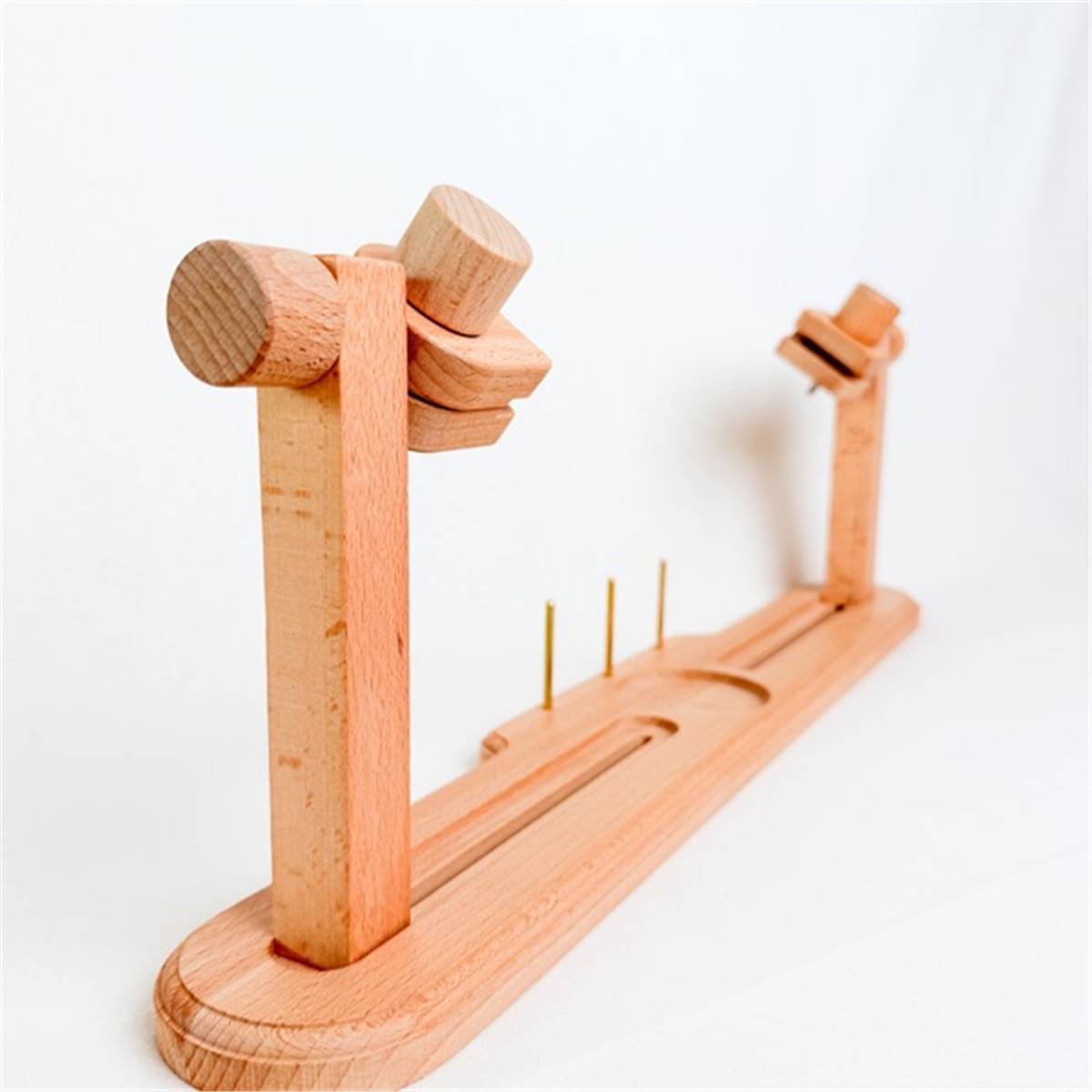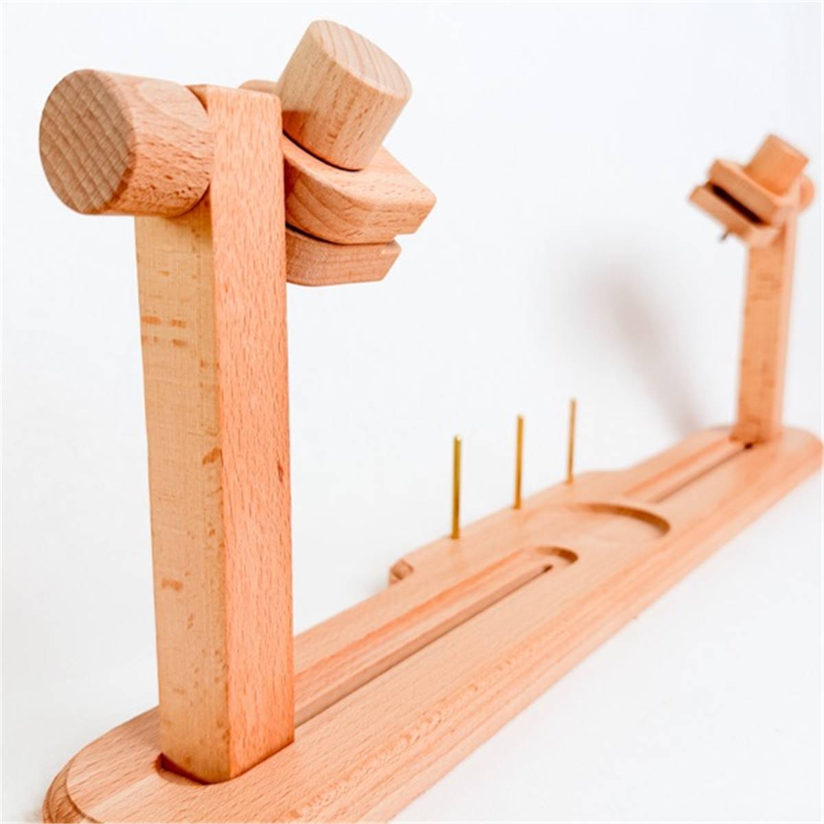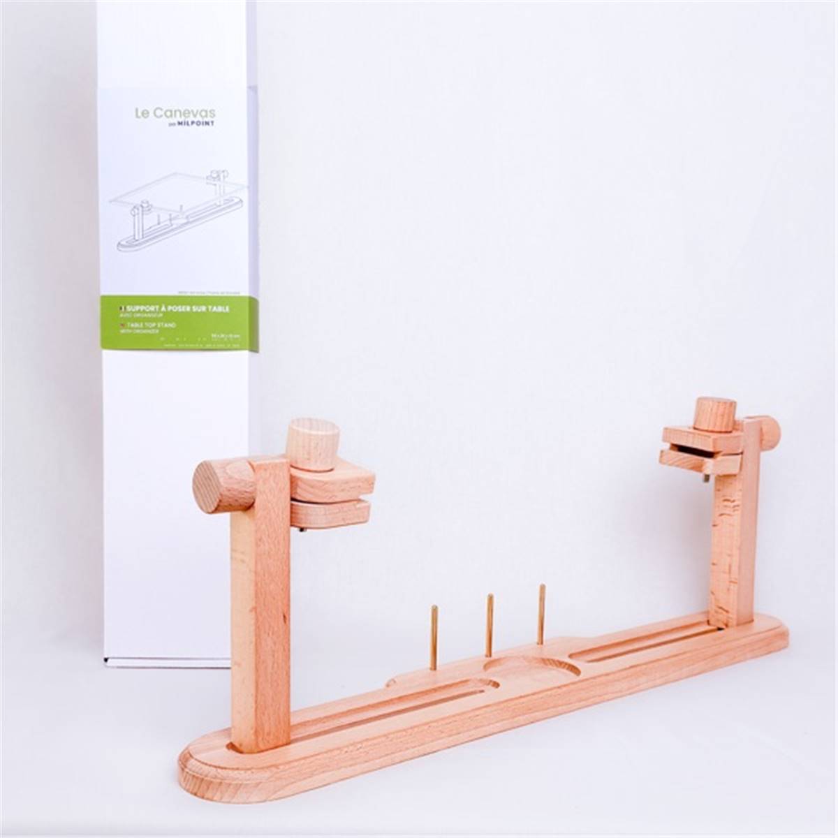Support de table en bois de hêtre conçu pour maintenir tambours et cadres de broderie ou de canevas. Il est équipé d’un support à bobines, idéal pour garder un espace de travail pratique et bien ordonné.