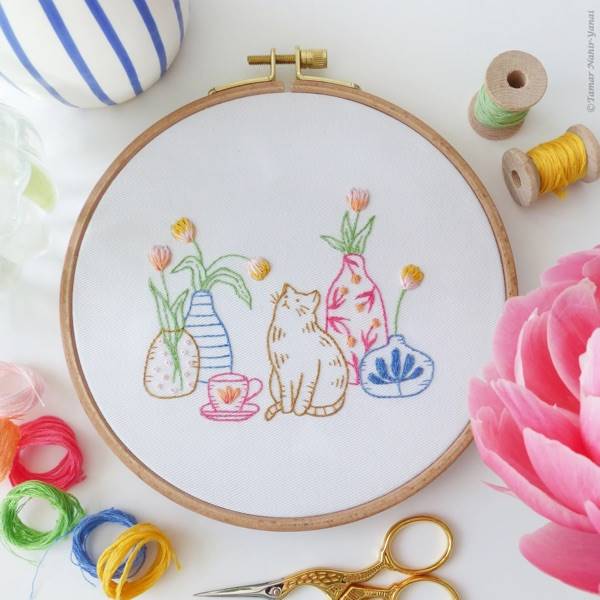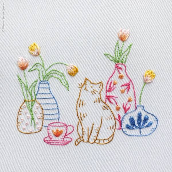 TULIPS AND CAT - KIT BRODERIE 21X21CM - TAMBOUR NON INCLUS - TAMAR NY